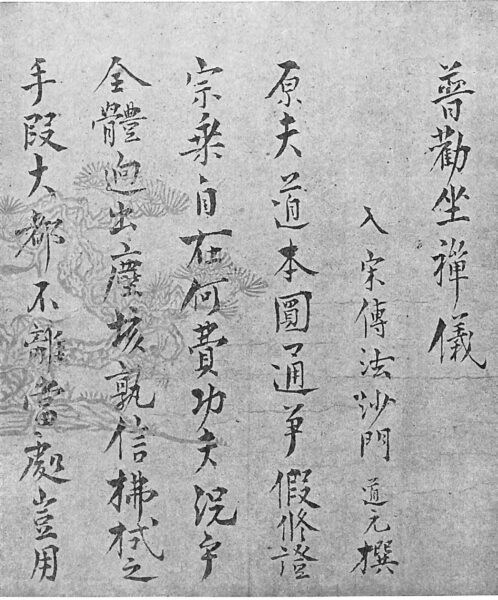 道元が帰国したのは安貞元年(一二二七)九月であった。帰朝後間もなく「普勧坐禅儀」(図二三参照)を著した。ときに二十八歳であった。おのずからその高風を慕いよる者多く、道元は「深草の仏法房聖人」と呼ばれたという。