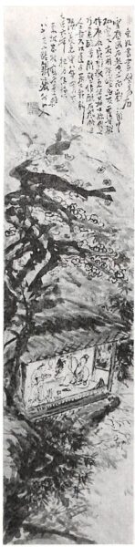 以上小林秀雄の文章から興味ある部分を引いて見た。鉄斎は口癖のように「わしの絵を見るなら、まず賛を読んでおくれなされ」といっていたという。これはさきに挙げた関雪画伯の言と同一の趣意であり、たしかに文意内容を味読しなければ一作の鑑賞は甚だ不十分であろうが、鉄斎の作のごときは、目撃すれば直ちにその賛の書としての凄味が激烈に胸に喰い入る。小林秀雄が「鉄斎の賛は文章ではなく書道である」という所以であろう。
